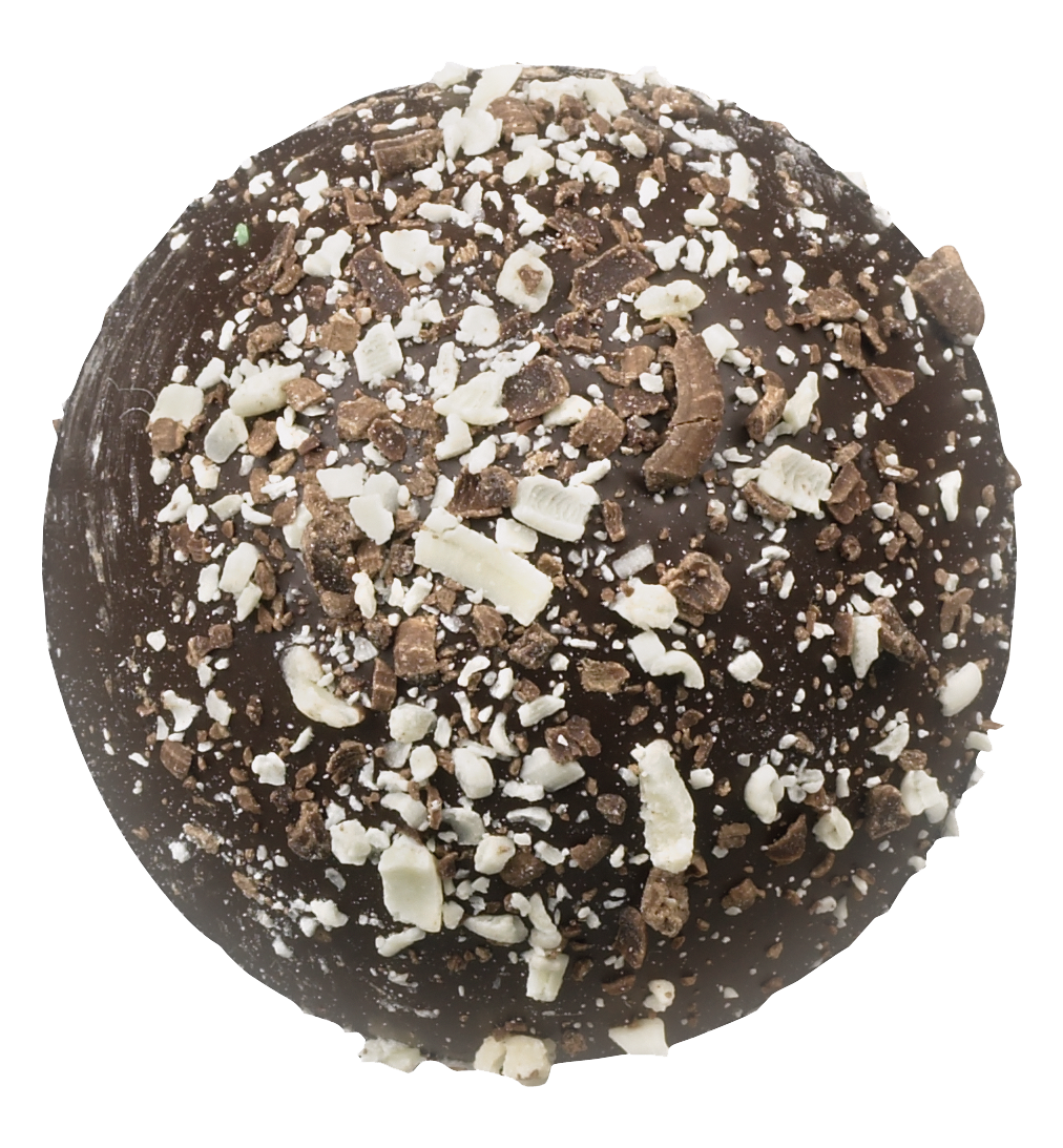 Long a symbol of hospitality, mint is a classic for all occasions. Break open this perfectly tempered dark chocolate shell to reveal a pure burst of refreshing peppermint. Delicate and refined, it’s an elegant way to end dinner or begin the evening. You’ll enjoy a night on the town without ever leaving home.