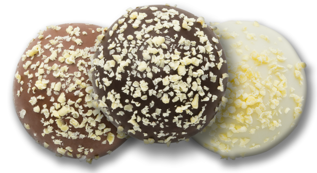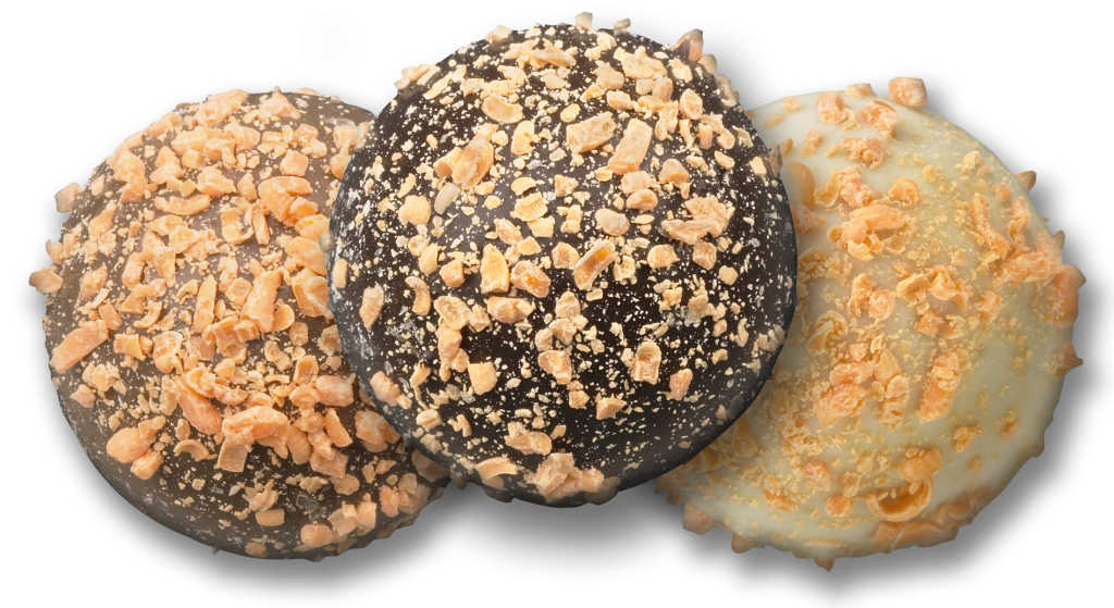 Hop on your bike and ride down Main to the corner candy store. In the window, you’ll see Grandpa Birnn standing over the copper kettle making a fresh batch of caramel. This time-proven classic will make you feel like a kid again with its milk chocolate shell and soft, buttery center. Go ahead, eat two… Mom will never know.