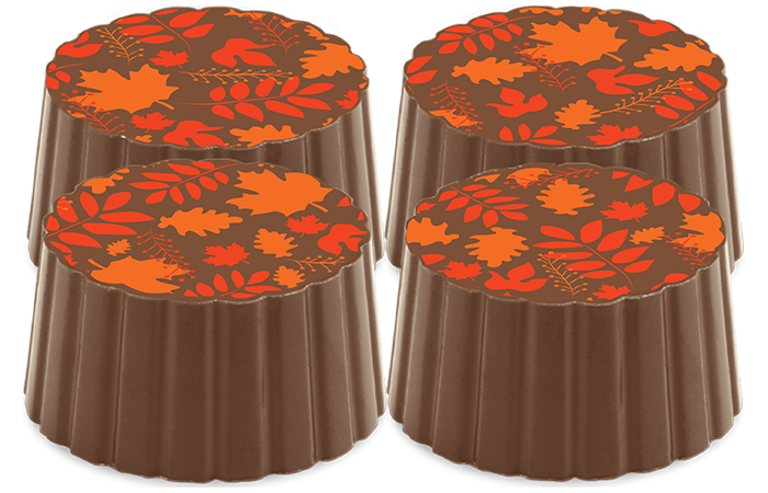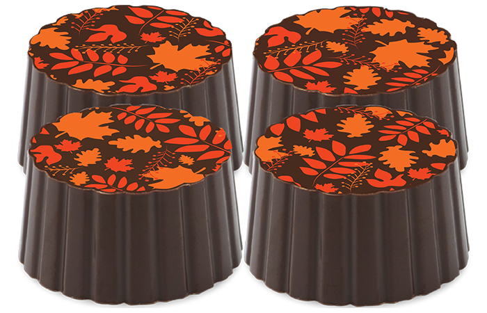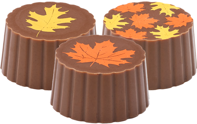 Original fall leaves with a maple center. Ganache is a white chocolate. Available in Milk or Dark shell. Made with real Vermont Maple Syrup.